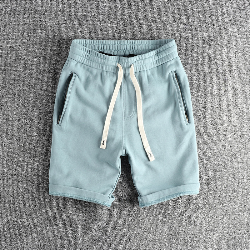 紧密水洗毛圈棉舒适运动五分裤 男 复古潮流拉链口袋休闲短裤 英式