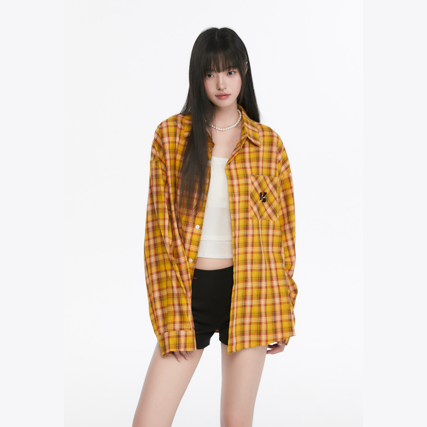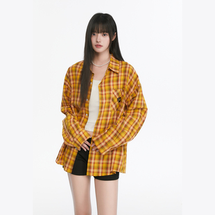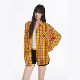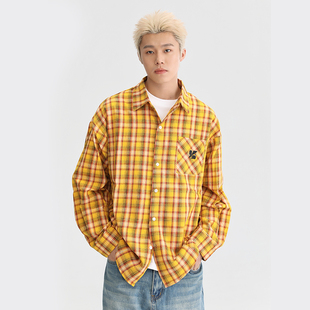 开衫 King 男女情侣款 多巴胺黄色格子衬衫 上衣外套衬衣 Prince美式