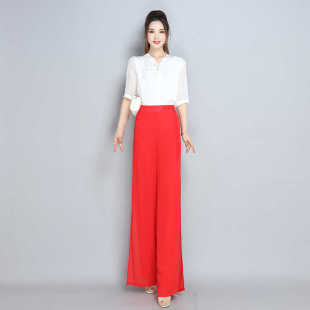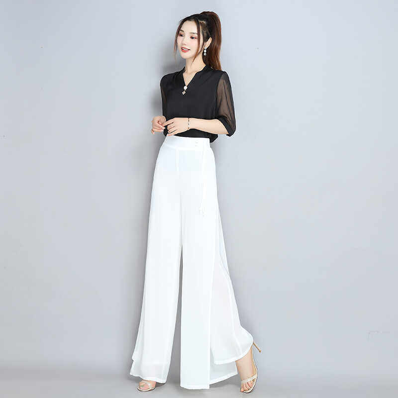 雪纺裤 开叉阔腿裤 裙裤 新中式 拖地长裤 新款 女2026高腰直筒舞裤 夏季