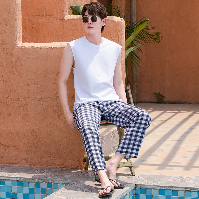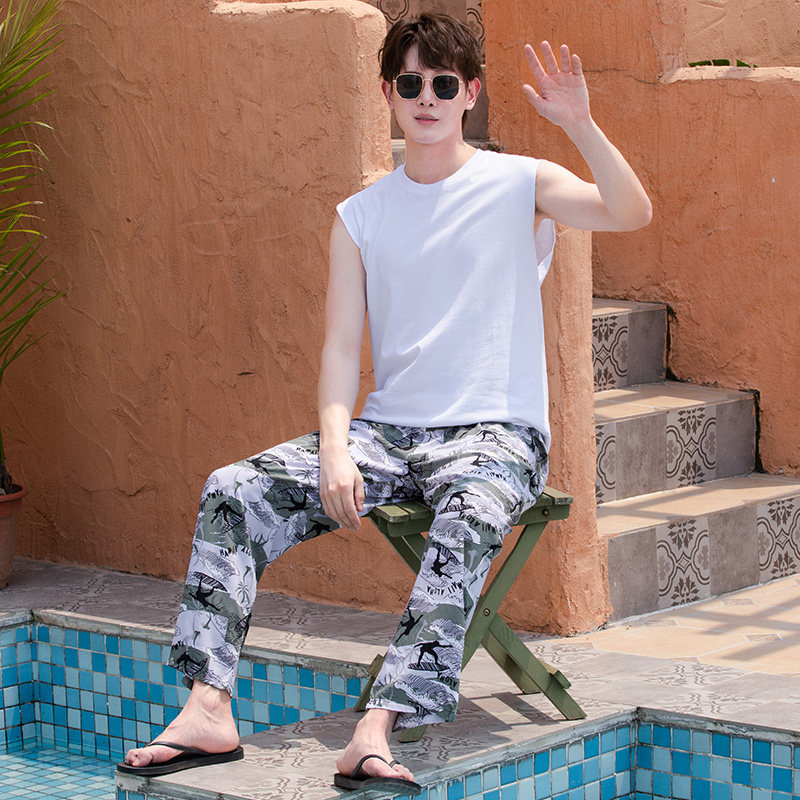 夏季 人造棉加大码 直筒裤 棉绸睡裤 子防蚊裤 轻薄款 纯色沙滩长裤 男款