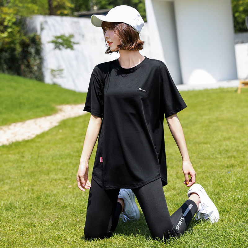 透气T恤跑步健身套装 胖mm200斤薄款 宽松速干运动上衣女夏新款 大码