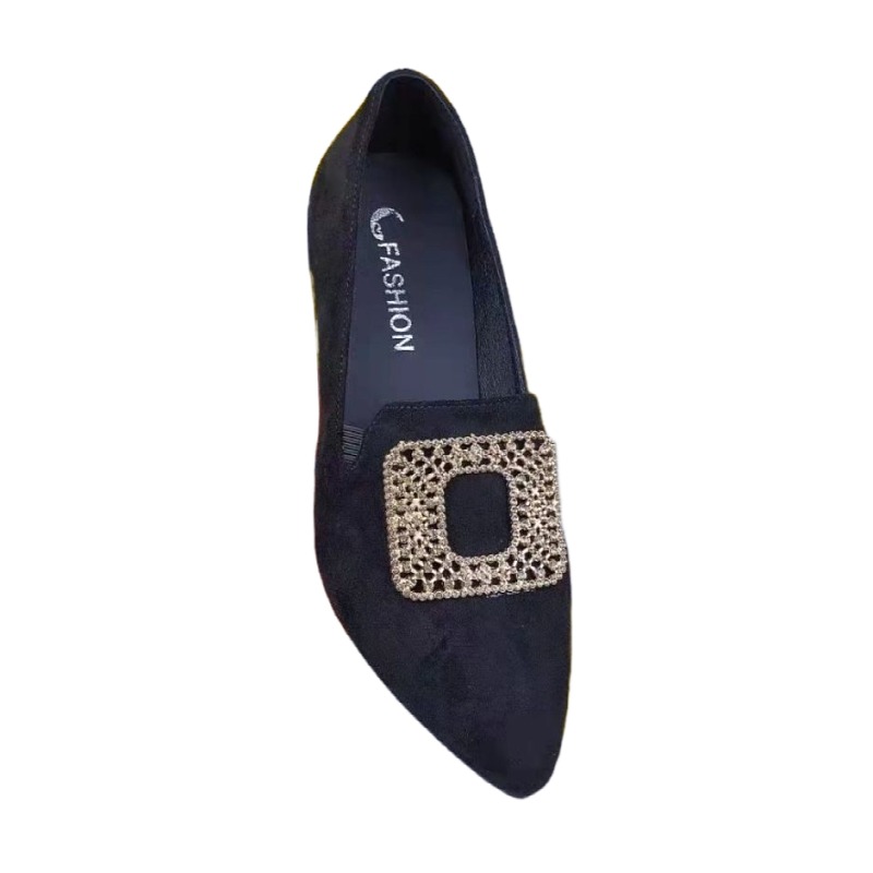 软皮百搭尖头套脚软底透气女鞋 新款 女粗跟2025秋季 磨砂皮浅口单鞋