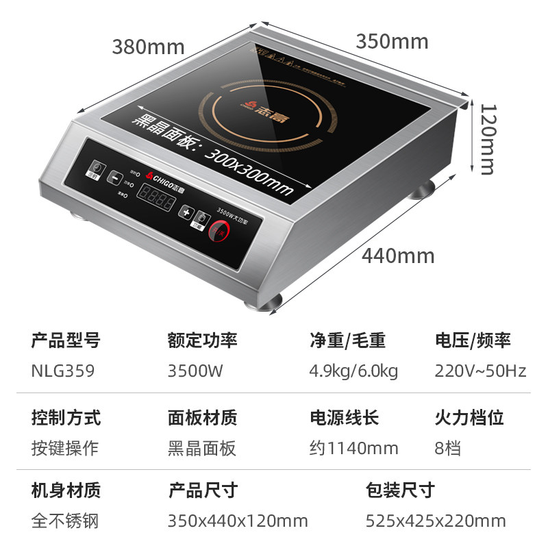 志高商用电磁炉3500w大功率平面爆炒奶茶店饭店商业电磁炉NLG359