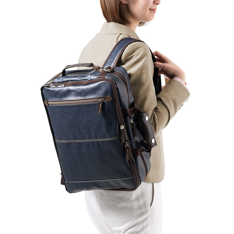 日本SANWA牛仔布电脑包手提包笔记本挎包公文包双肩包女休闲挎包书包骑行运动男大容量商务旅行防水简约背包