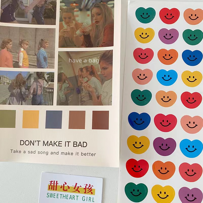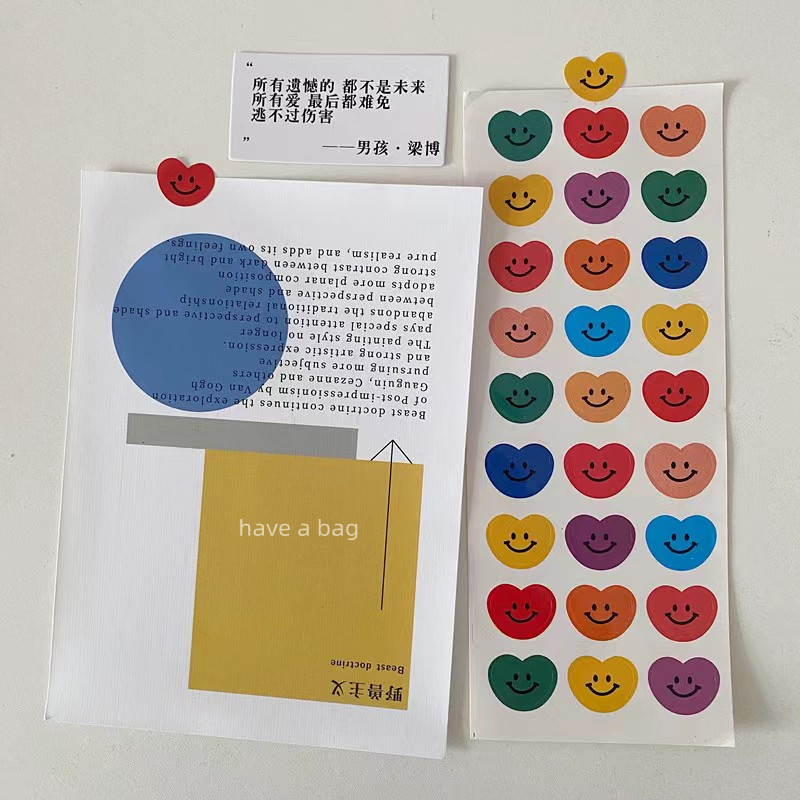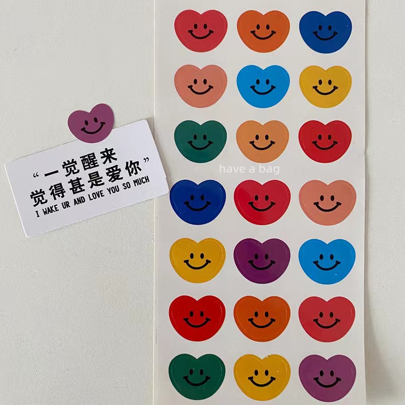 韩国ins风彩色笑脸心形贴纸礼品包装 饰贴不干胶 封口贴海报墙贴装