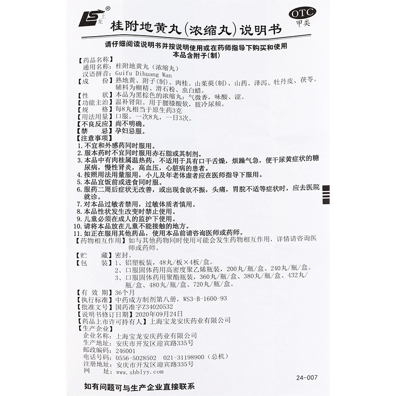 上龙 480丸补肾阳腰膝酸软男性怕冷尿频肾虚男补品 桂附地黄丸