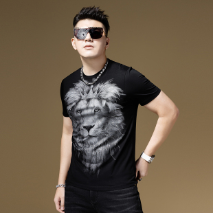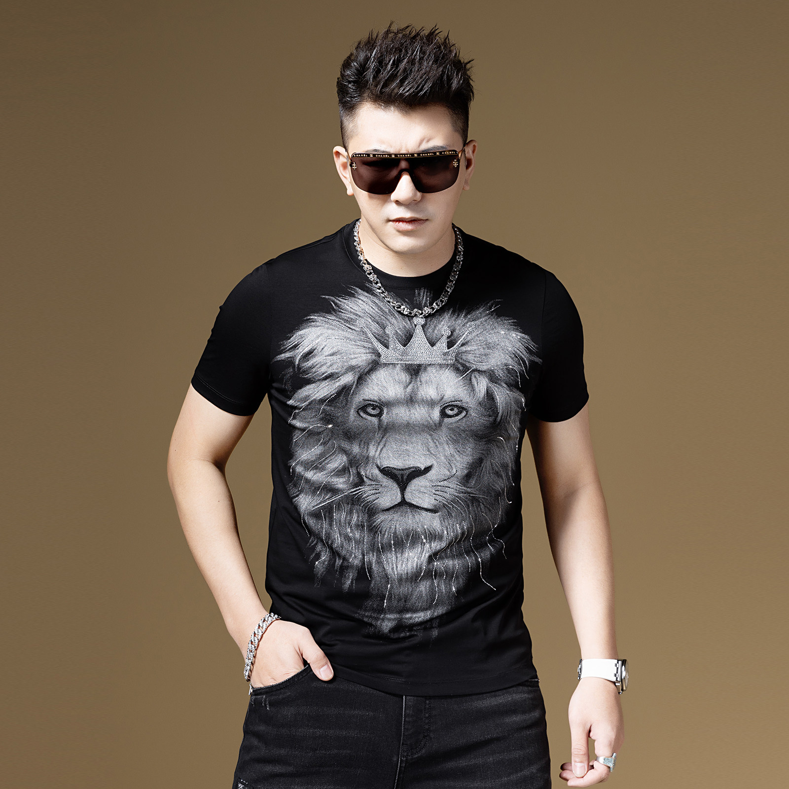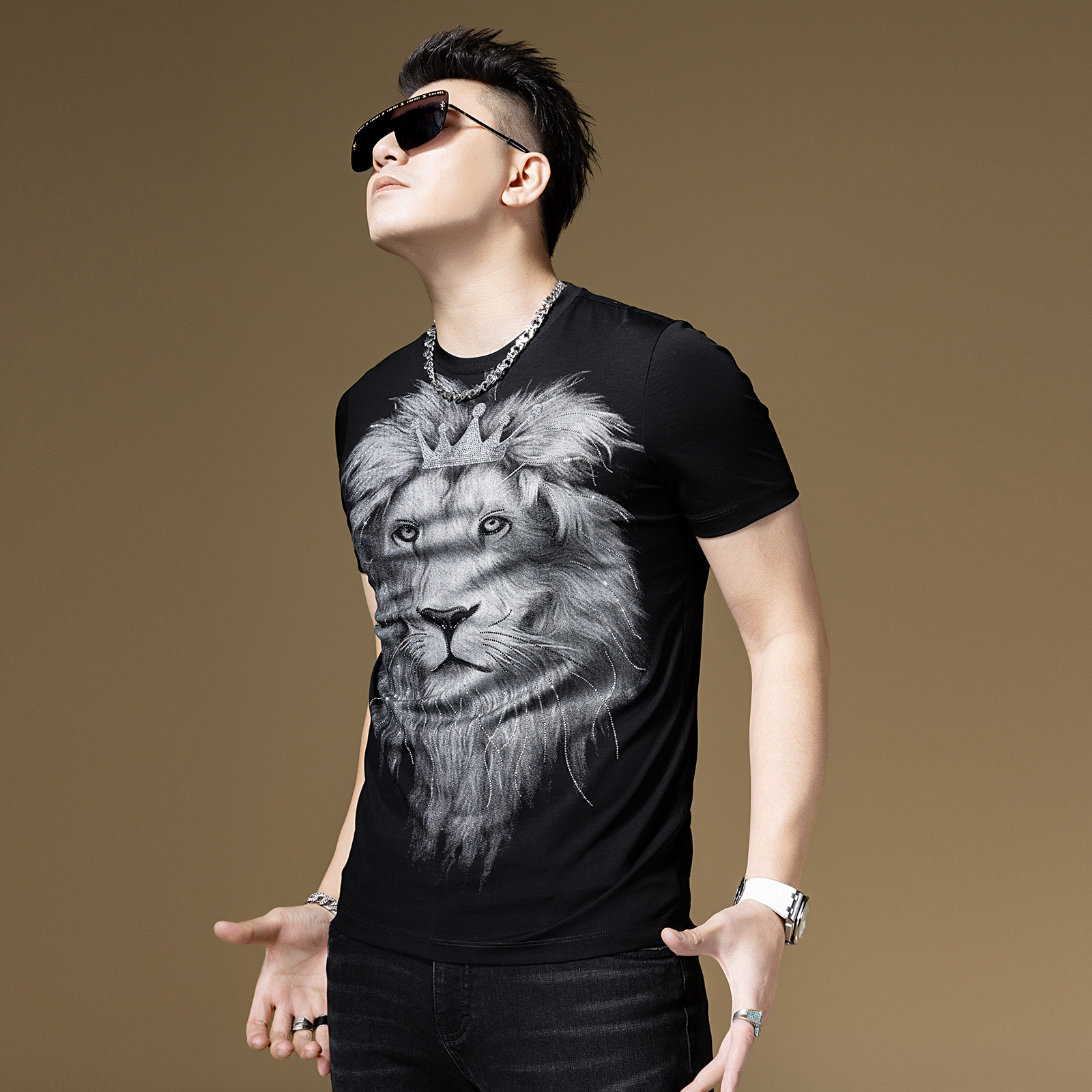 2023新款 男装 体恤 男潮牌潮流夏季 BM欧洲站t恤男烫钻印花狮子短袖