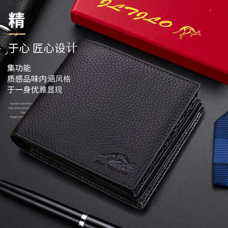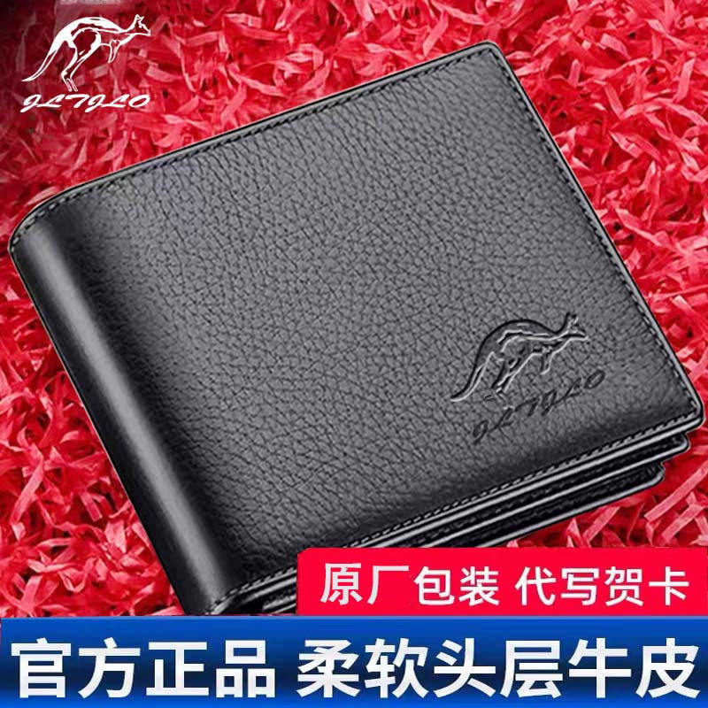 袋鼠域钱包士真皮钱包短款 简约钱包青年头层牛皮皮夹子 钱夹新款
