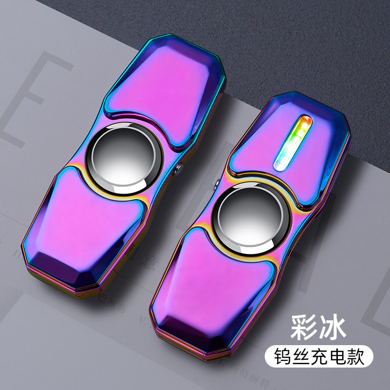 USB充电打火机充电陀螺带灯创意指尖陀螺点烟器DIY个签HT2205