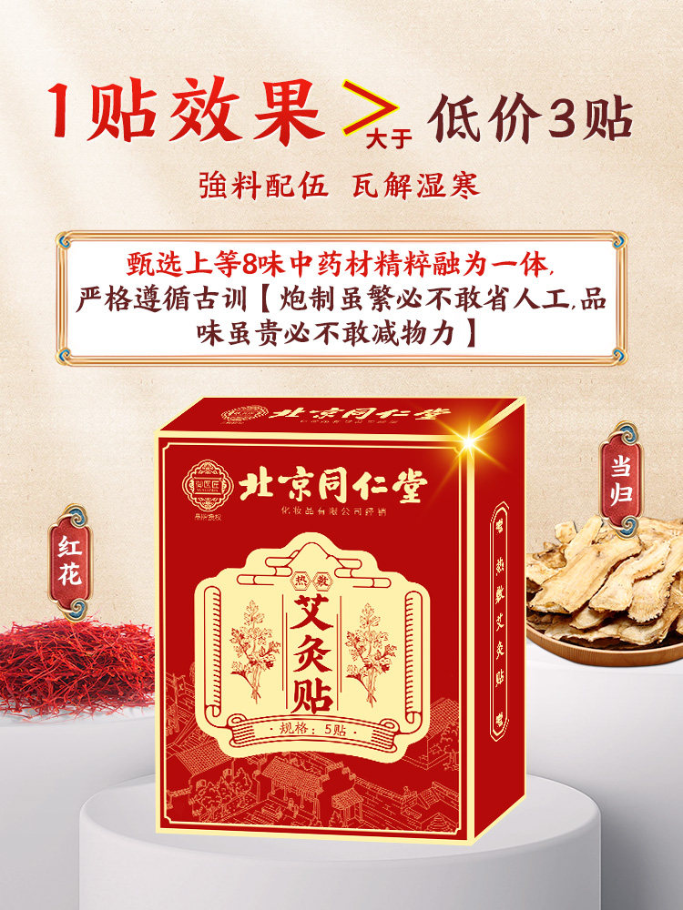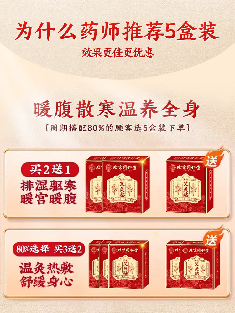 同仁堂艾灸贴艾草自发热暖宝宝热敷宫暖祛湿寒去湿排毒调理肚脐贴