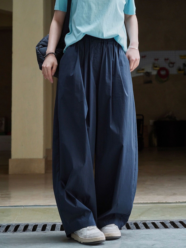宽松廓形高腰松弛感长裤 休闲春夏薄款 子女日系慵懒阔腿裤 玫红色裤