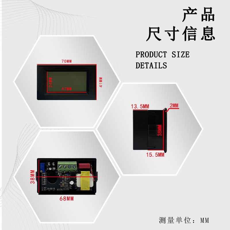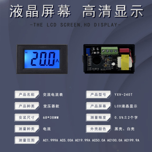 YXV 交流电流表LCD液晶数显表头小型电流表 240T带变压器款