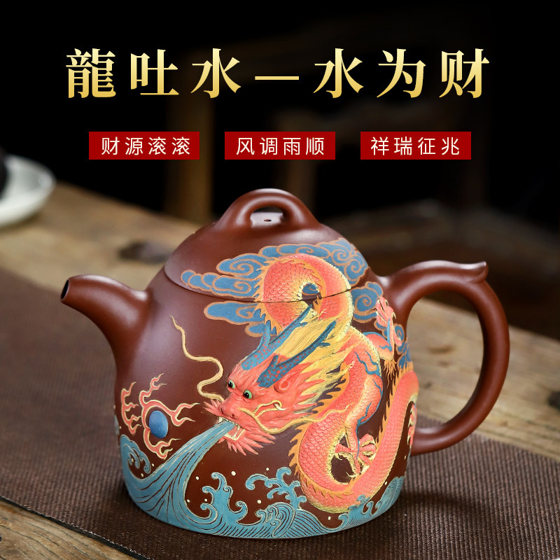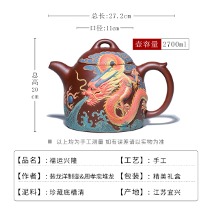 宜兴紫砂壶纯手工堆龙壶名家周孝忠茶壶功夫茶具泡茶壶大容量秦权