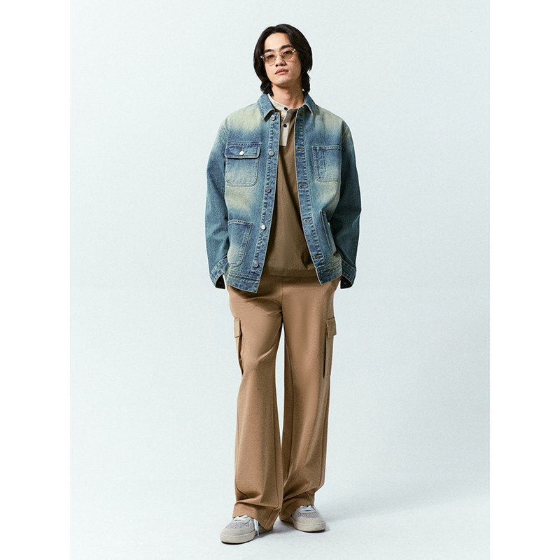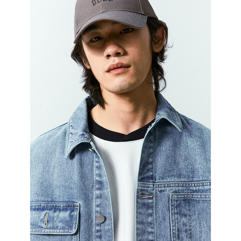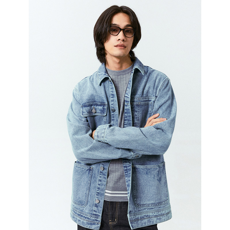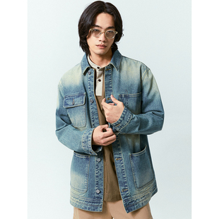 美式 复古设计感原色牛仔外套宽松百搭正肩口袋cleanfit夹克上衣男