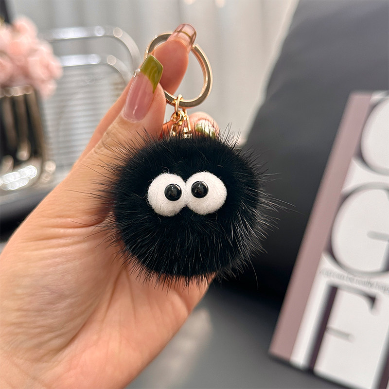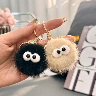 可爱水貂毛小煤球汽车钥匙扣挂件ins毛绒公仔玩偶书包包挂饰礼物