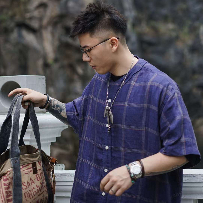 V37美式 男秋潮牌学院风少年感衬衣高街加绒情侣外套 复古格子衬衫