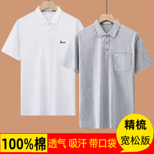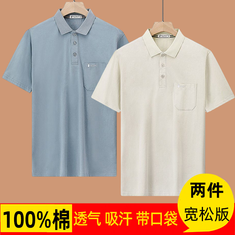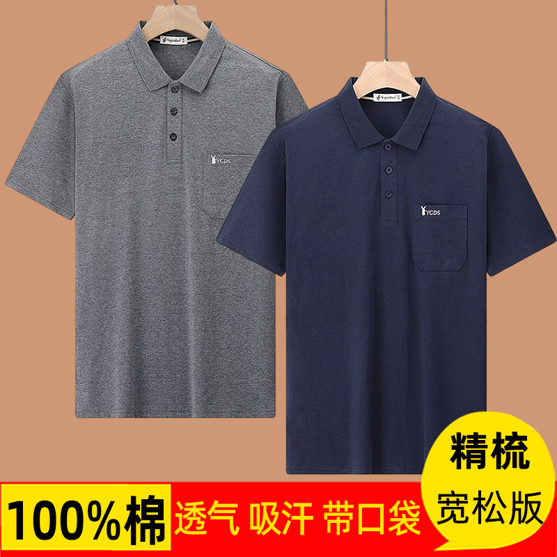 夏季 薄款 POLO衫 半袖 T恤 男士 宽松大码 中老年人纯棉短袖 全棉爸爸装