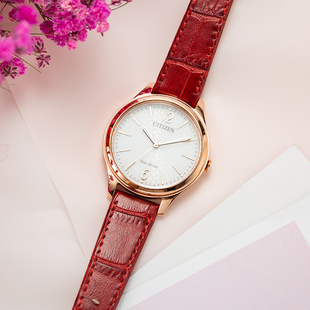 12A 西铁城光动能优雅气质皮带休闲女表EM0508 本命红热销款