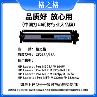 cf218a 104w m132fp snw墨盒打印机HP18a硒鼓可加粉 格之格适用于惠普M132snw粉盒m132nw m104a