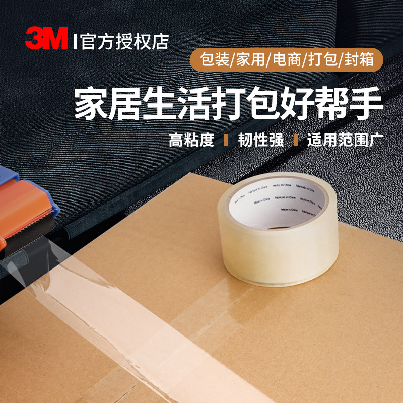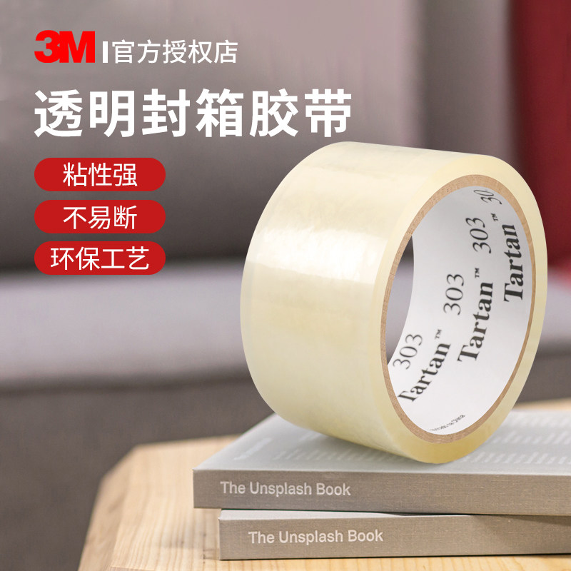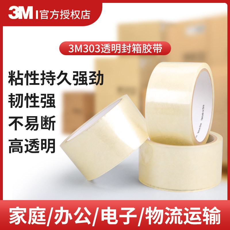 3M303透明封箱胶带大卷快递打包封箱专用封口固定透明胶带宽强力48mm长35m胶布家用宽胶带高粘度封箱不易断宽
