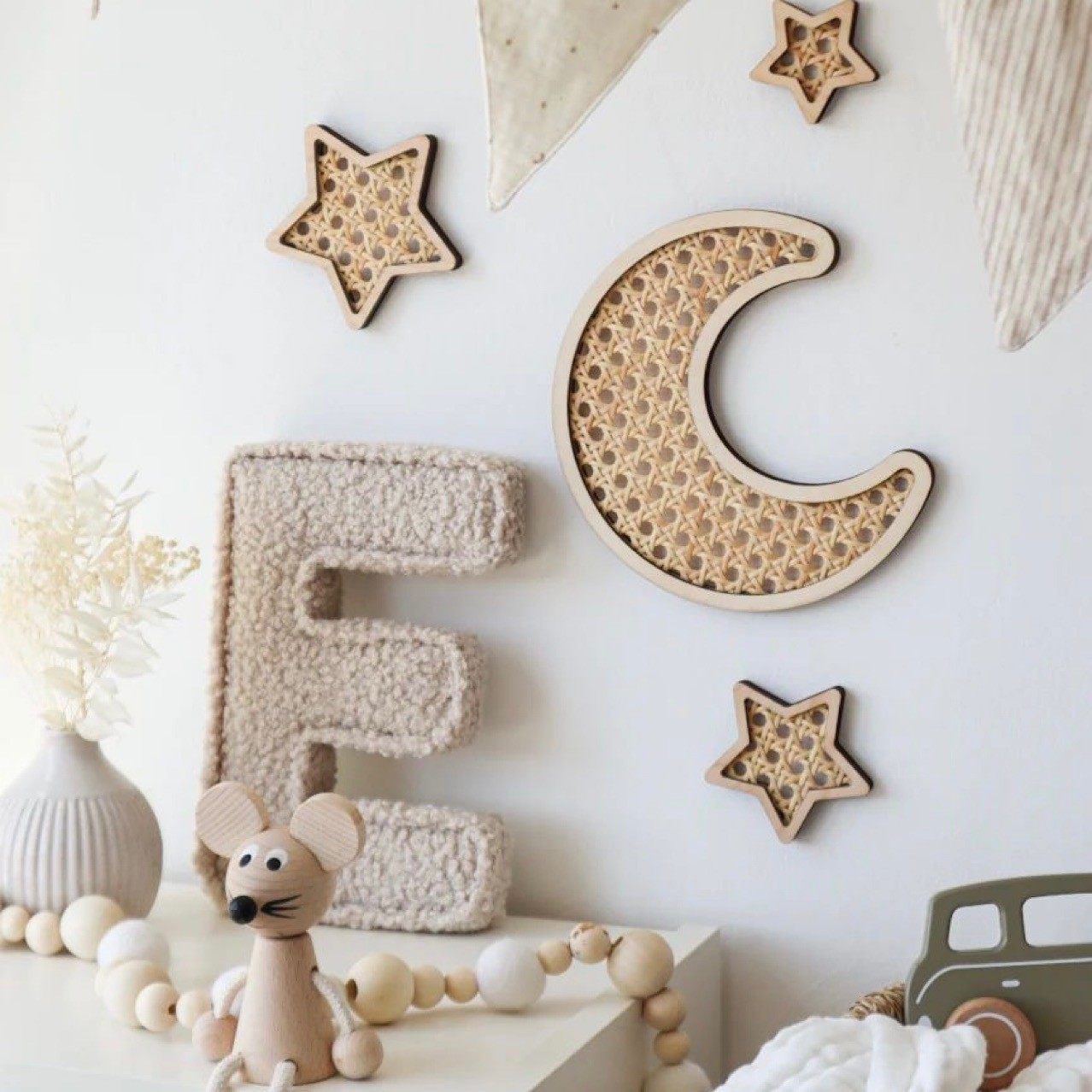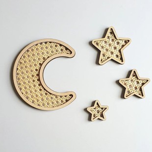 ins北欧木质编藤彩虹热气球星星月亮壁饰儿童房墙上装 饰桌面摆件