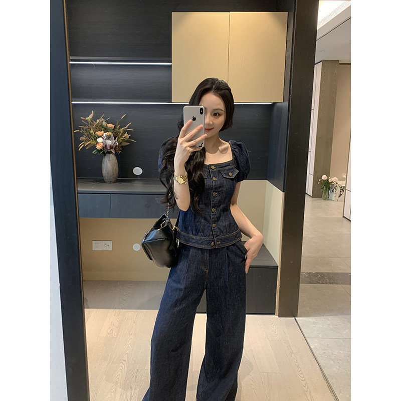 复古原牛 女显瘦套装 夏季 休闲裤 X625A09392 纯棉牛仔上衣 XINYI