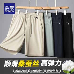 夏季 中年爸爸男裤 薄款 外穿休闲运动裤 冰丝五分裤 罗蒙桑蚕丝短裤