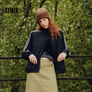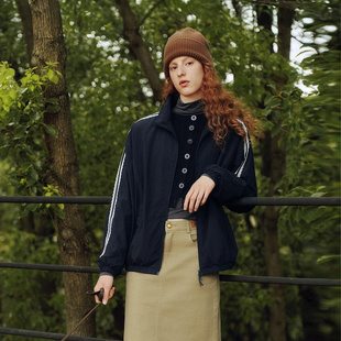 oversize立领肌理夹克 森马外套女蕾丝运动风2025秋新款 商场同款