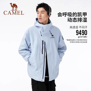 骆驼运动外套女冬季 加绒连帽软壳外套户外登山防水防风黑色夹克男