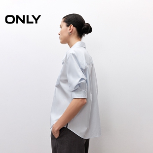 ONLY奥莱 衬衫 春夏款 翻领显瘦宽松正肩短袖 女 纯色简约设计时尚