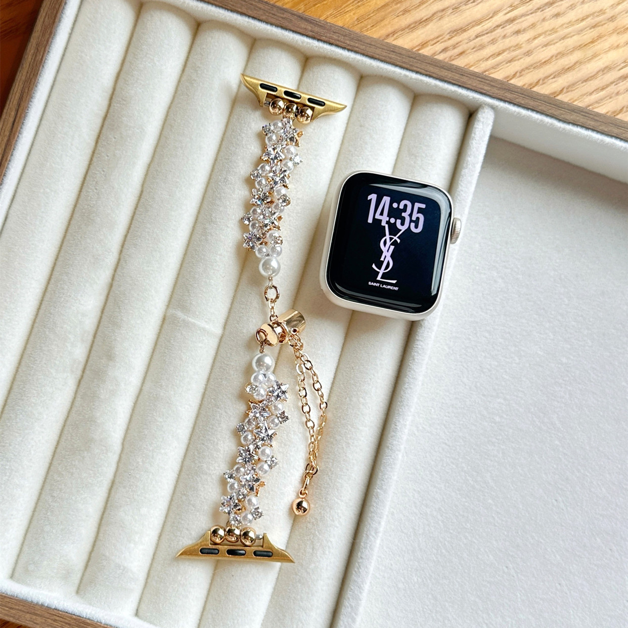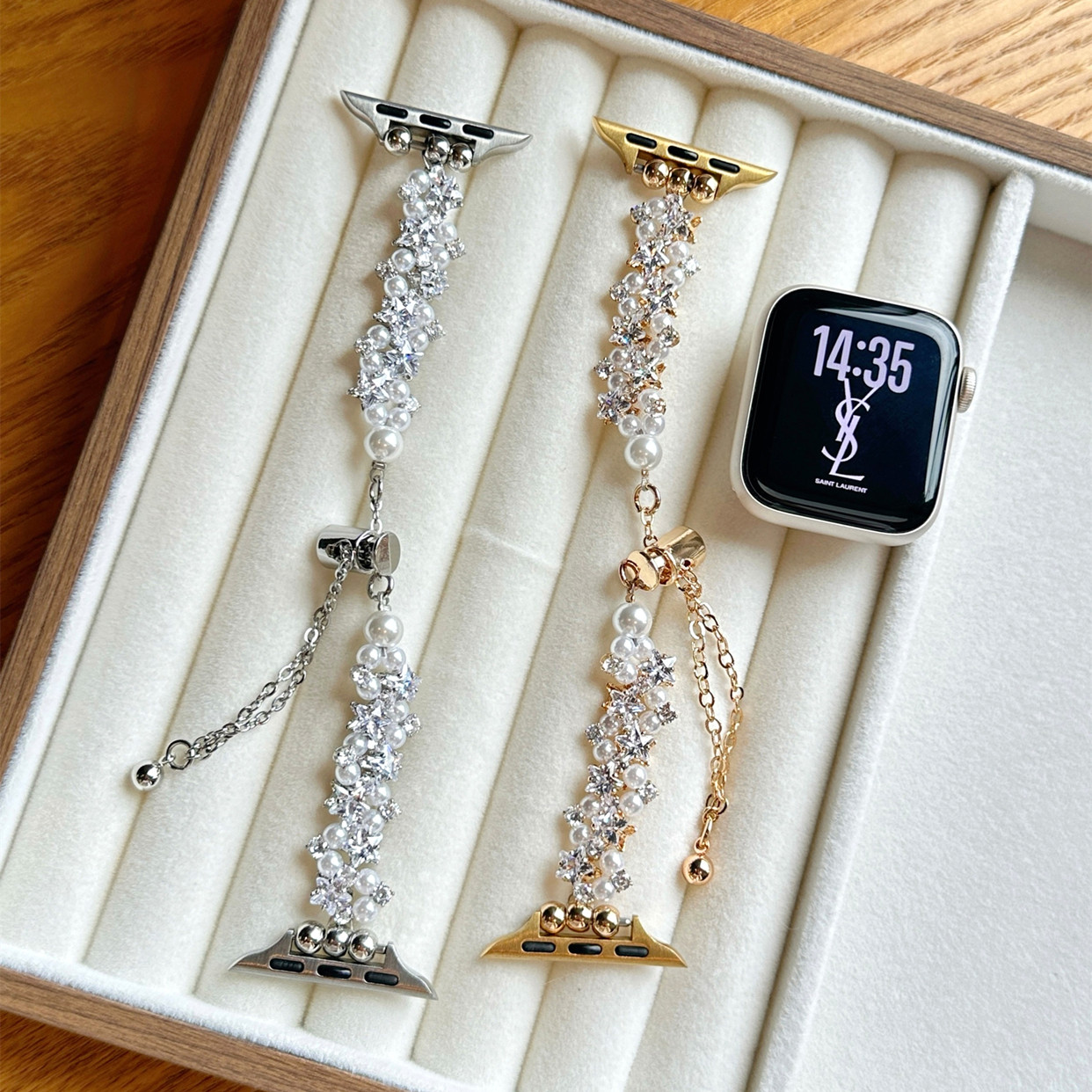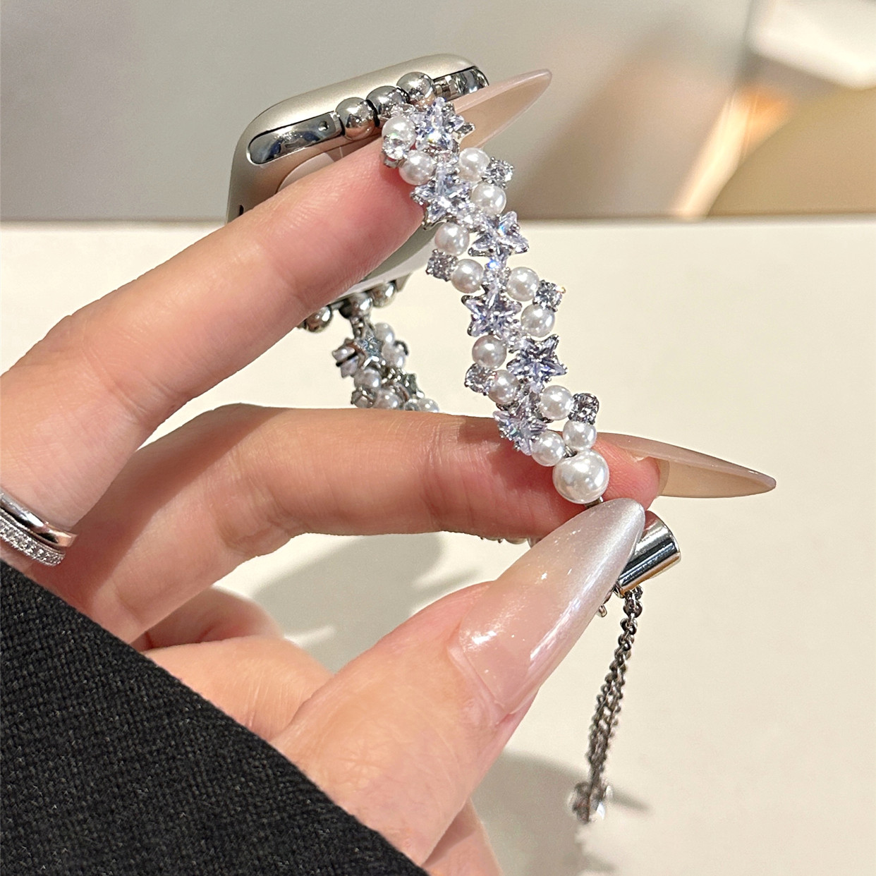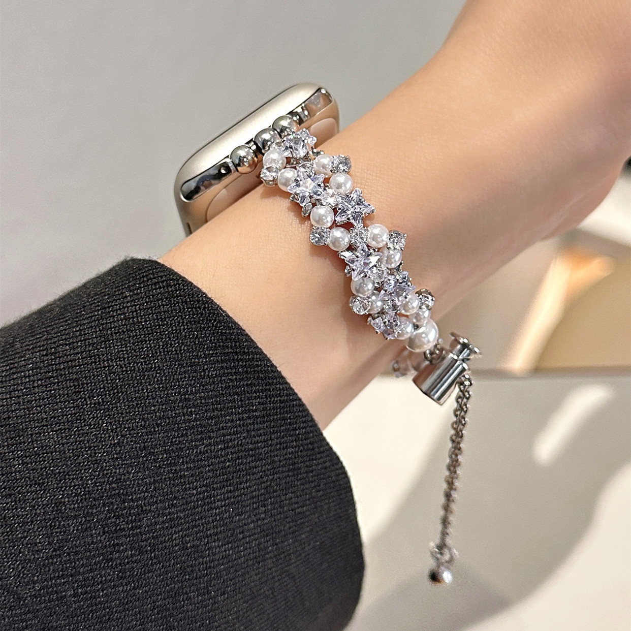 适用苹果手表s11代iwatch锆石星星珍珠金属手链表带applewatch9se