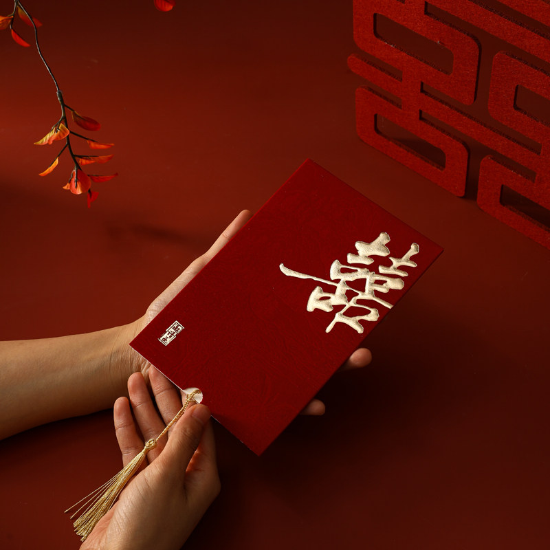 婚礼请柬2025新款 婚宴喜帖高级感邀请函小众定制打印 结婚请帖中式
