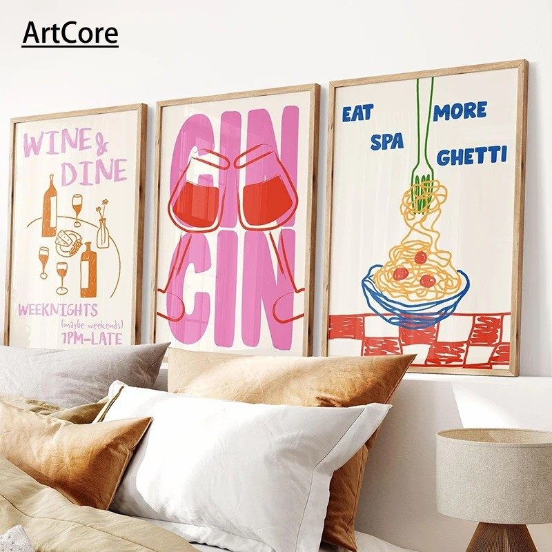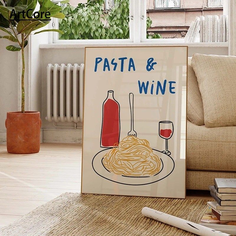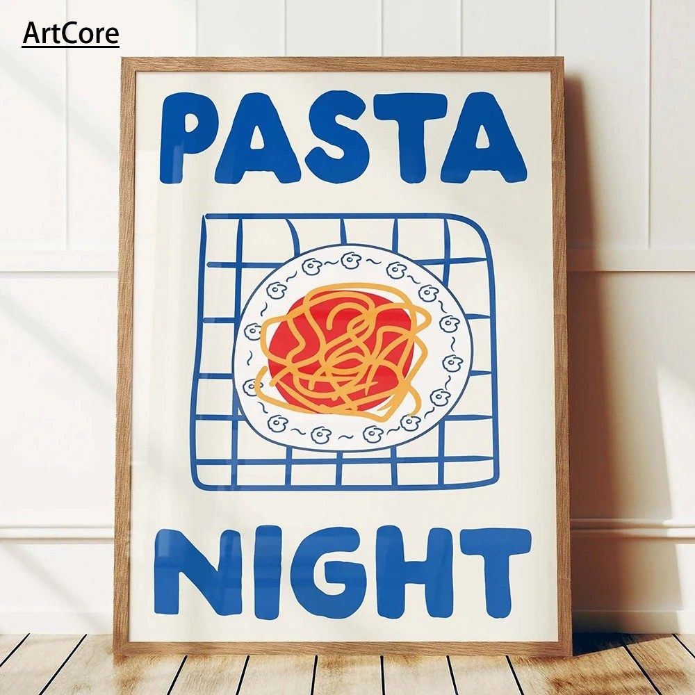 Pasta Night Art Cheers Poster Canvas Posters Print Wine Food