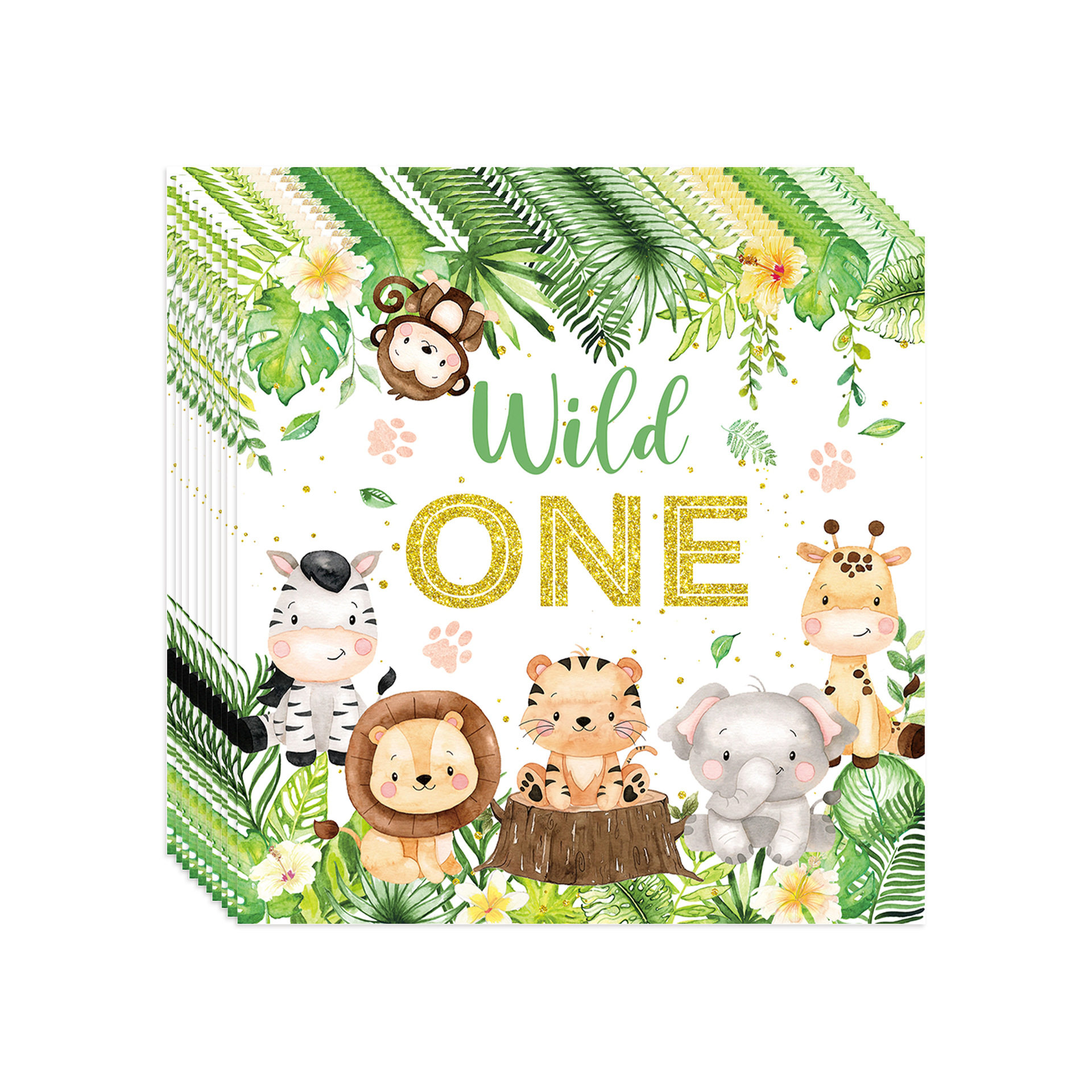 wild 饰一次性纸盘纸巾纸杯桌布布置品 one丛林动物餐具生日派对装