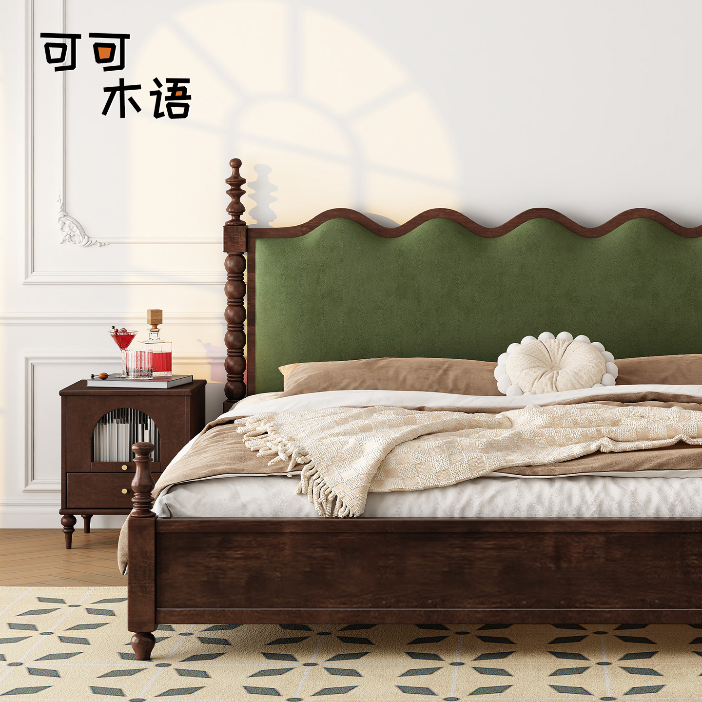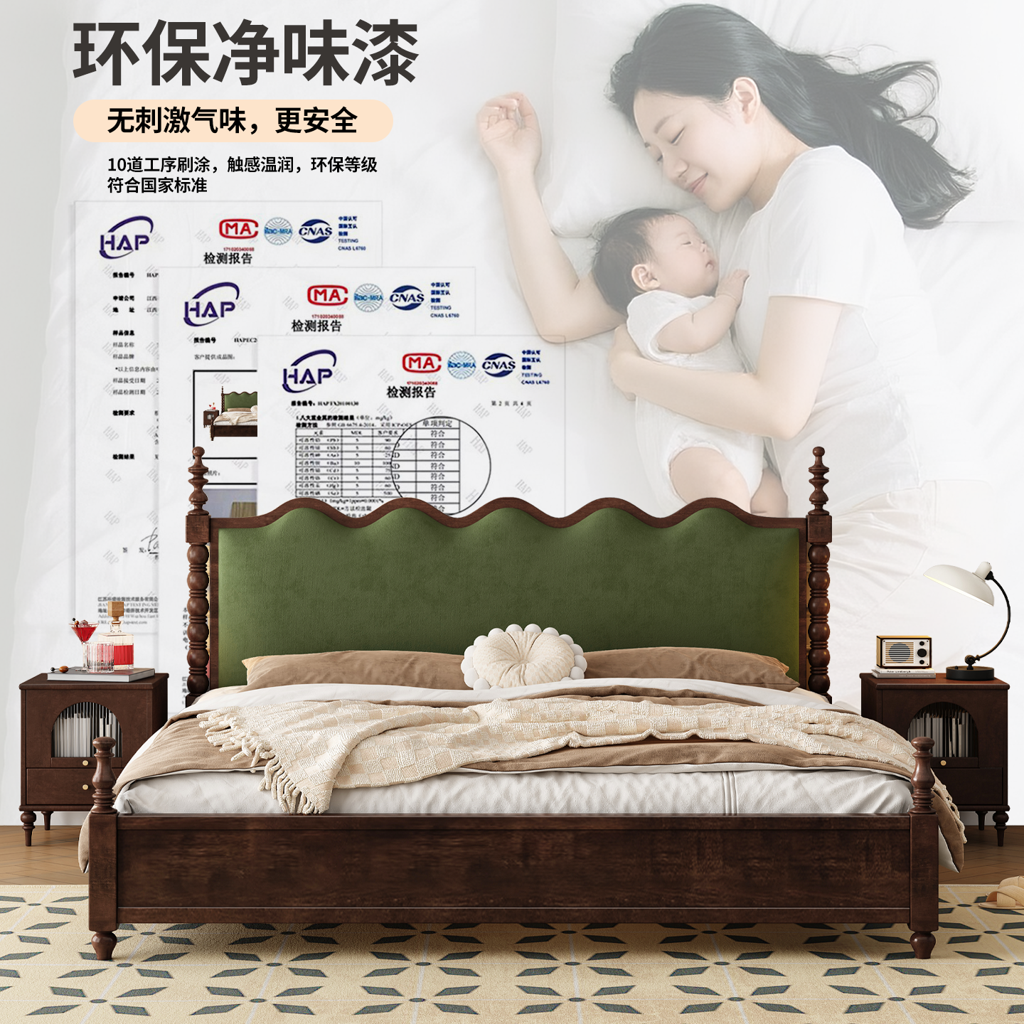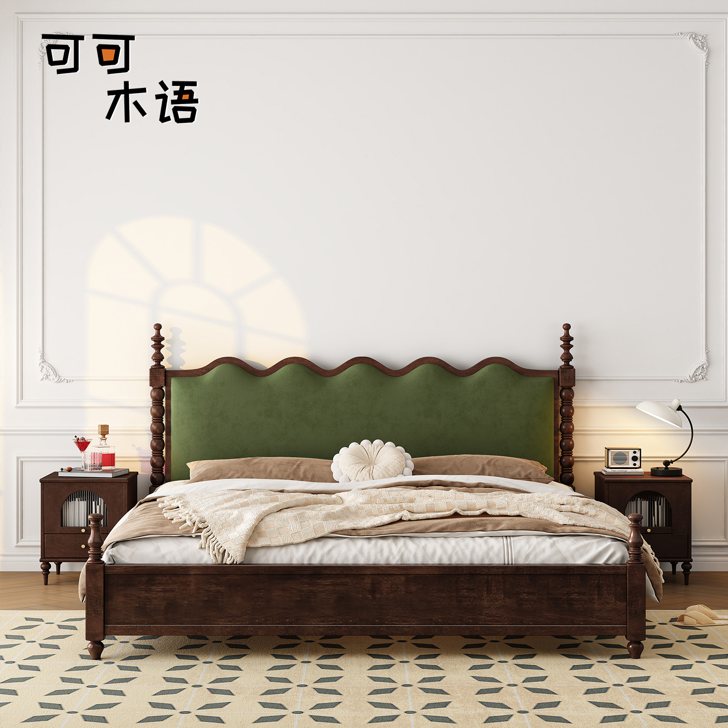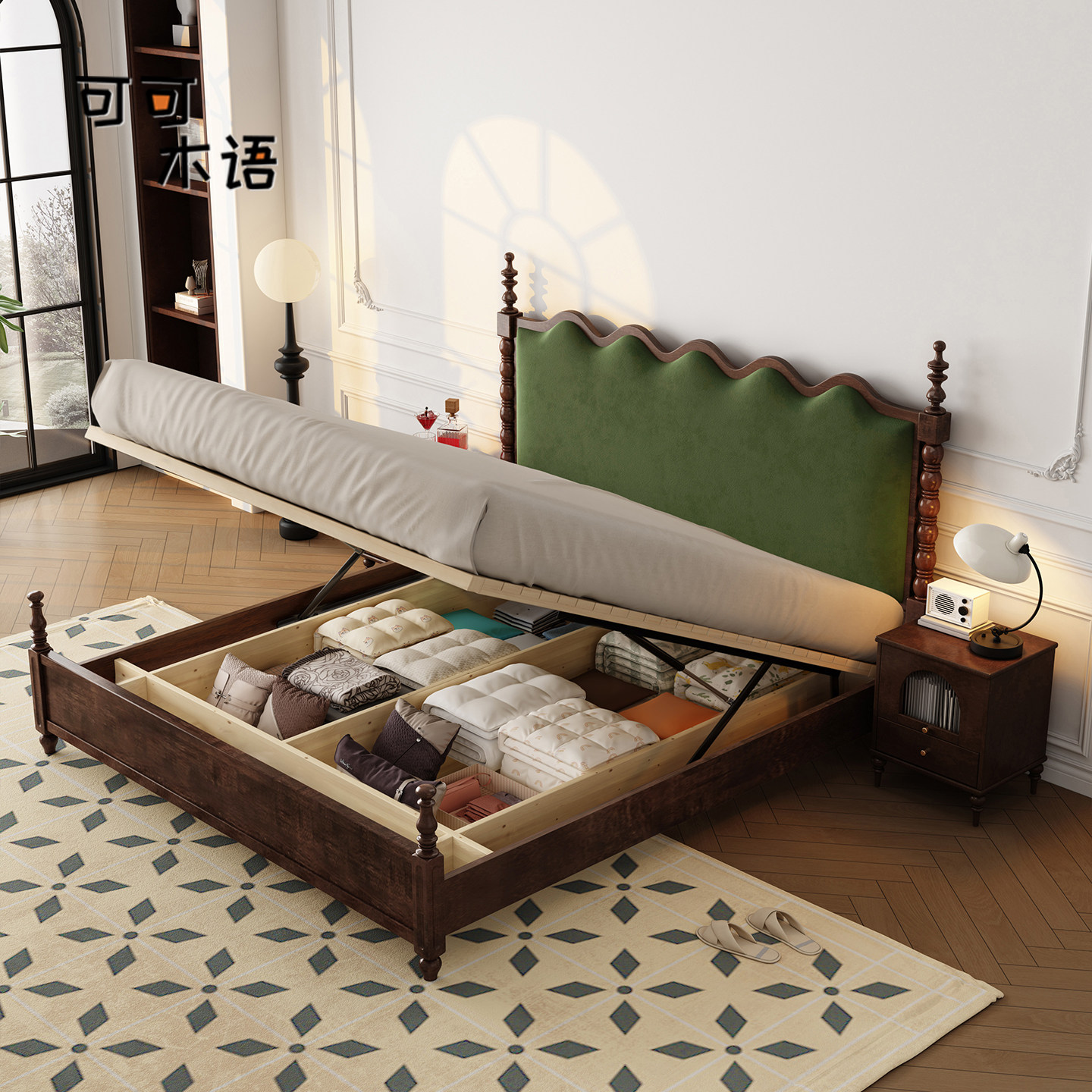 法式 实木储物床 复古床2米双人主卧软靠婚床1.8米中古风涟漪床美式