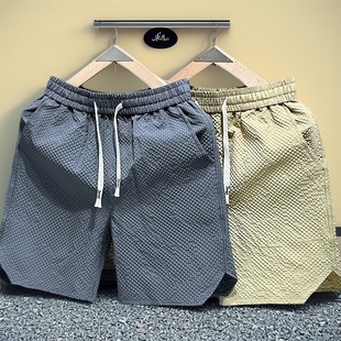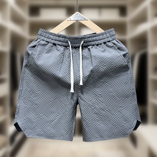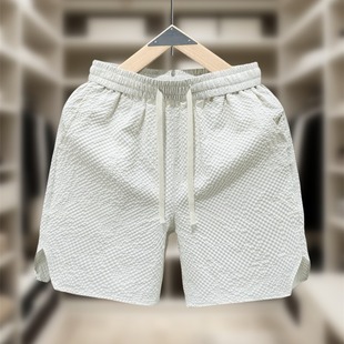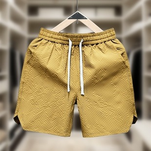 潮牌宽松休闲五分沙滩裤 美式 男女夏季 速干短裤 简约仿皱泡泡格薄款