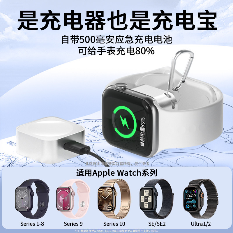 适用苹果手表充电器S10便携s9快充iwatch无线移动电源applewatch线支架底座Ultra充电宝