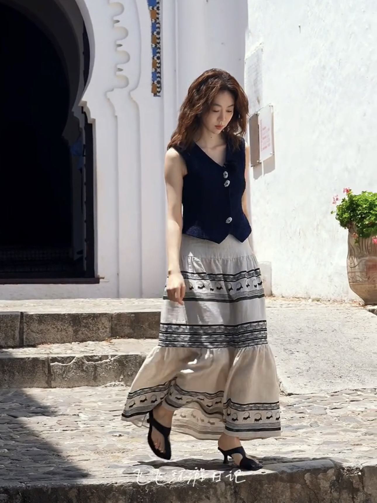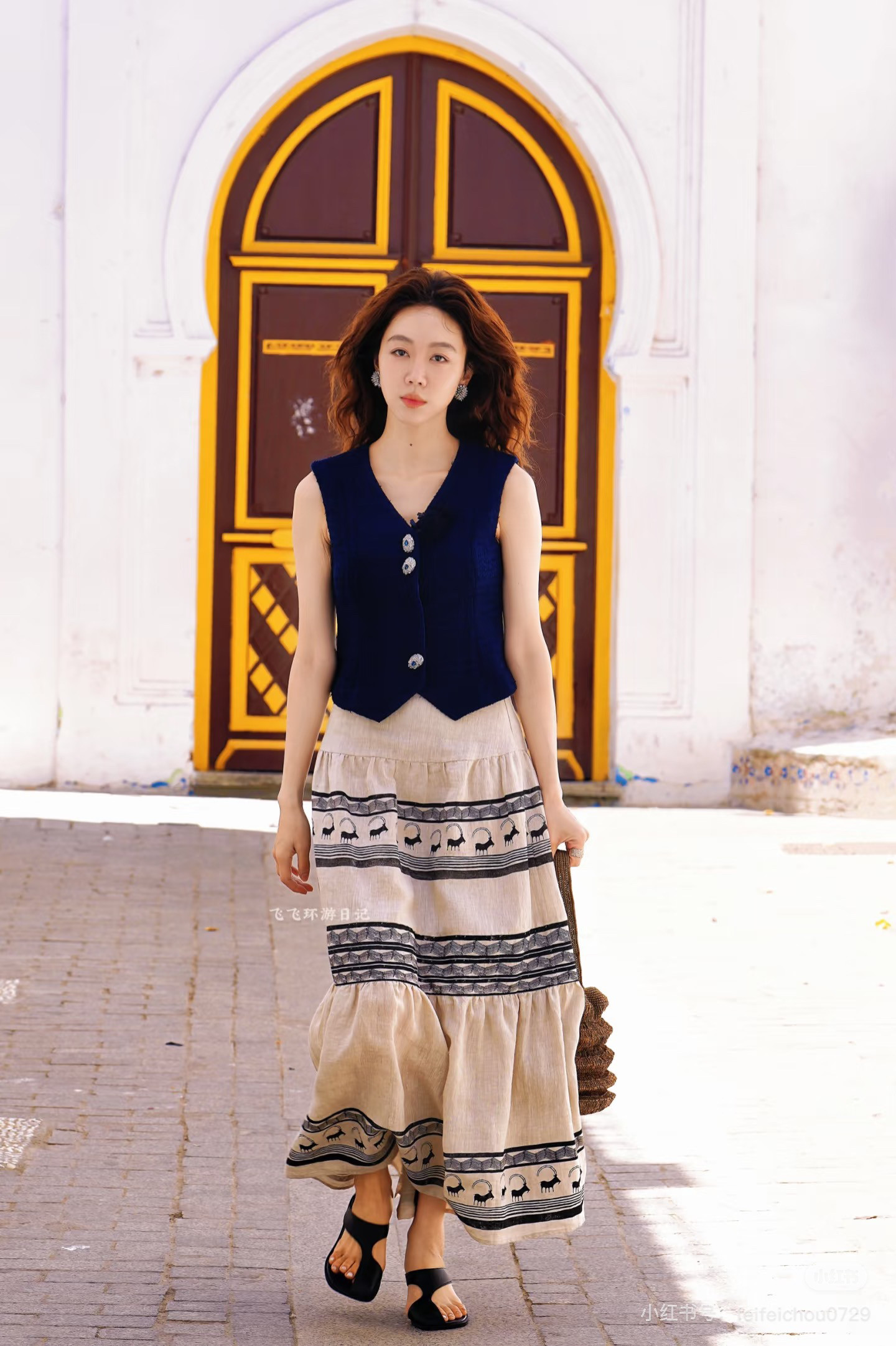 现货 亚麻做旧图腾印花波西米亚风半身裙大裙摆长裙半裙 姜妍同款