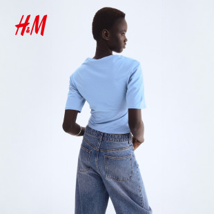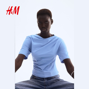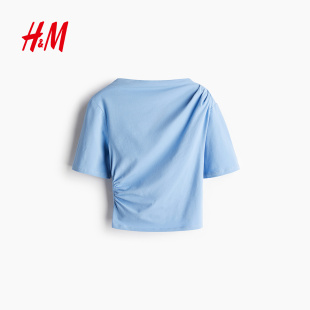 不对称领口短袖 褶皱收腰修身 上衣1290453 T恤春季 HM女装