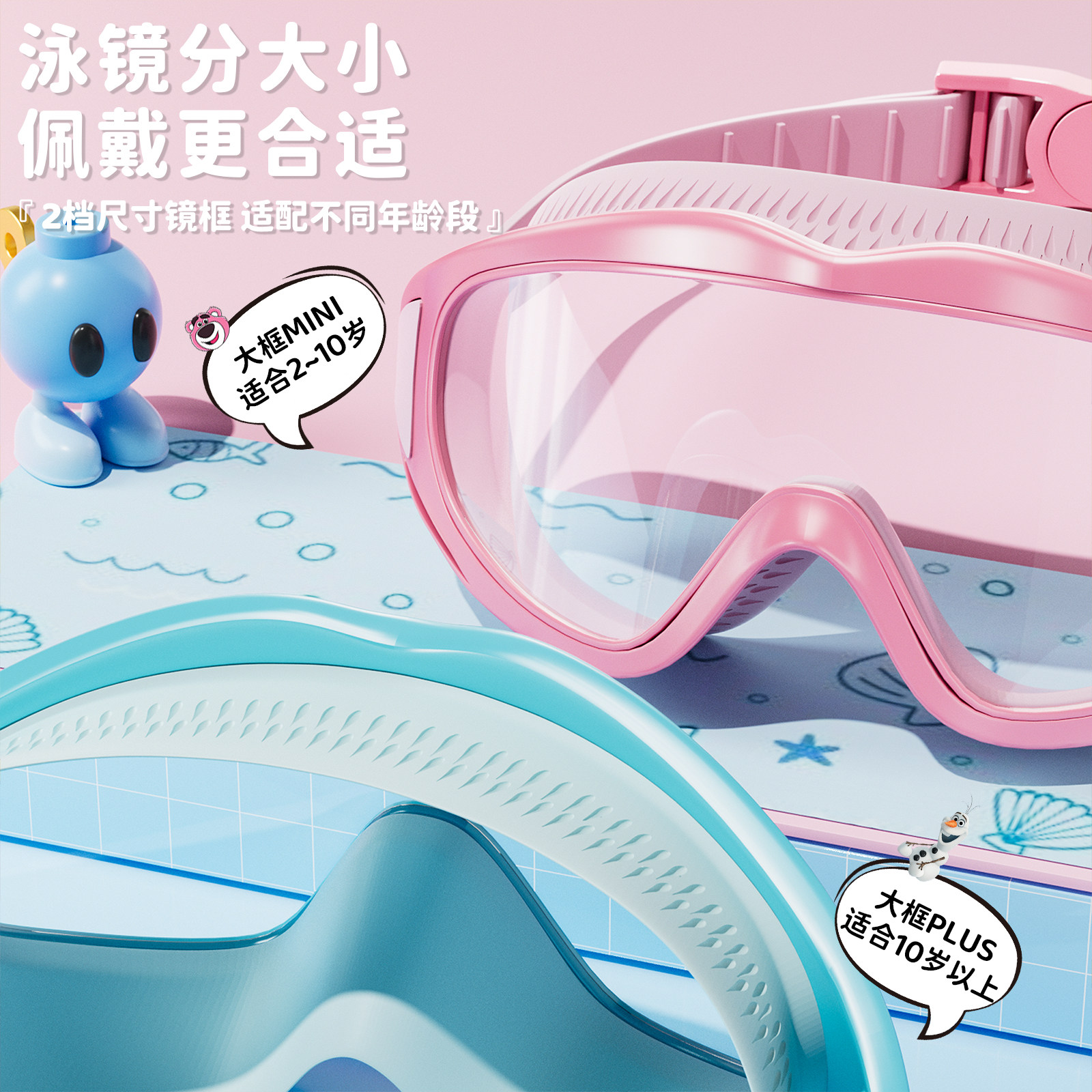迪士尼儿童泳镜泳帽大框高清防雾防水男童护目镜洗澡女孩游泳眼镜