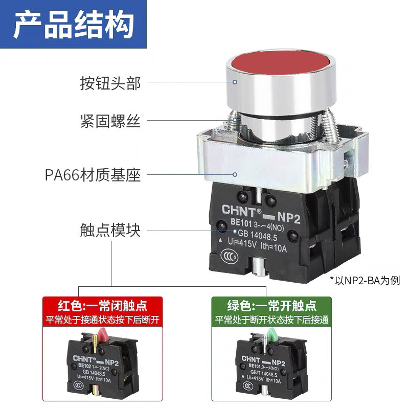 施耐德按钮开关XB2BA31C 自复位点动开关22mm绿色常开红色常闭A42