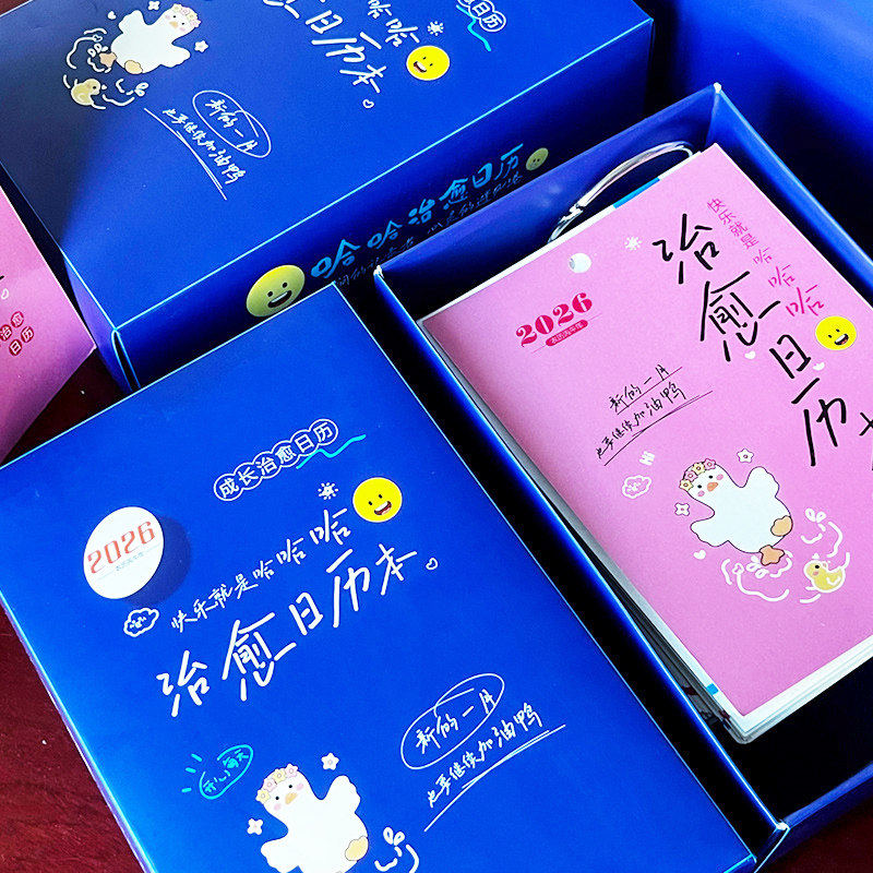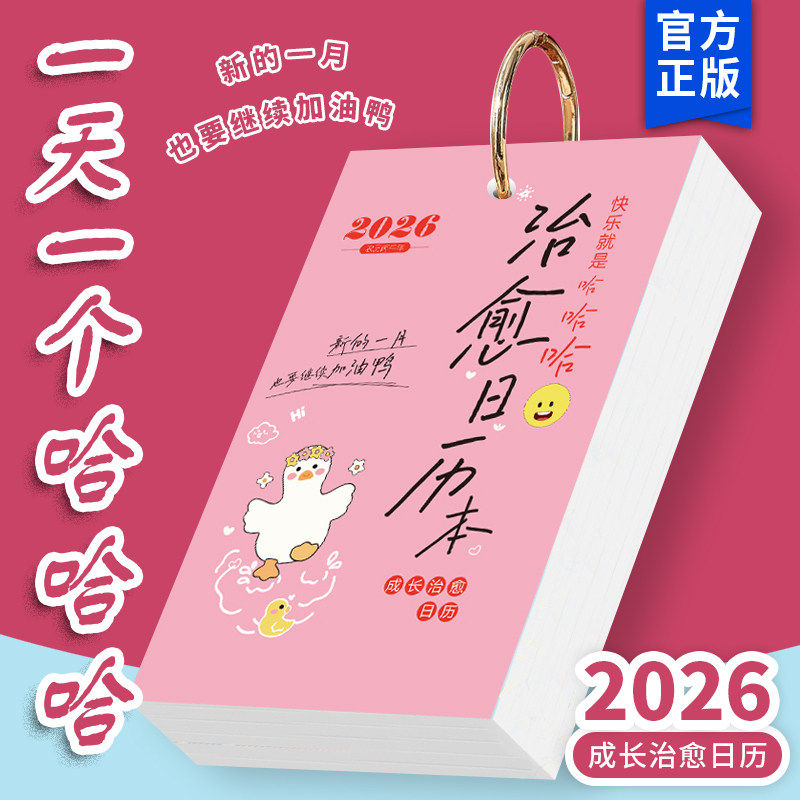 2026年暖心治愈系日历365天快乐就是哈哈哈24桌面创意摆件每天一页解压台历定制插画手绘手撕年历每日趣味内容办公室桌面装 饰台历