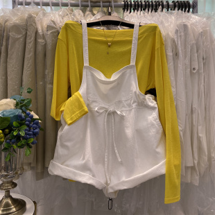 女潮少女感减龄连体衣套装 韩国东大门设计感小众时尚 百搭背带短裤