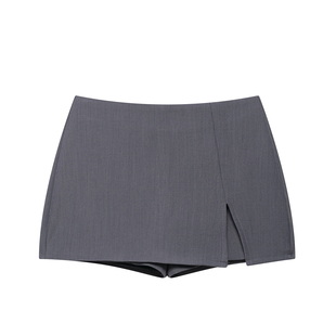 加厚高腰设计显瘦宽松半身裙裤 新款 2025年秋冬季 灰色百搭毛呢裙裤