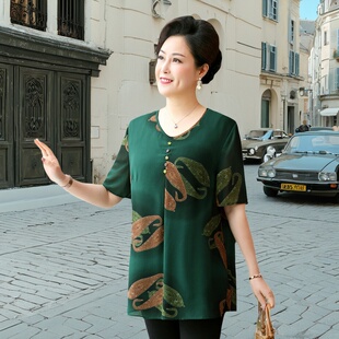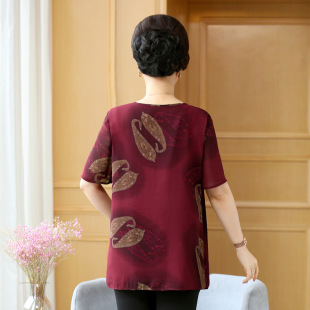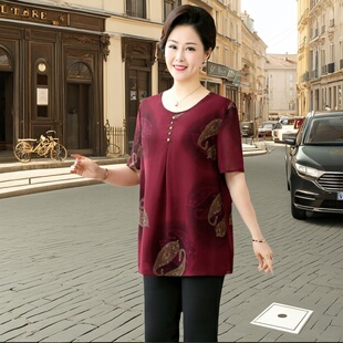中老年女装 小衫 加肥加大码 奶奶半袖 8XL胖妈妈夏季 雪纺T恤时尚 短袖