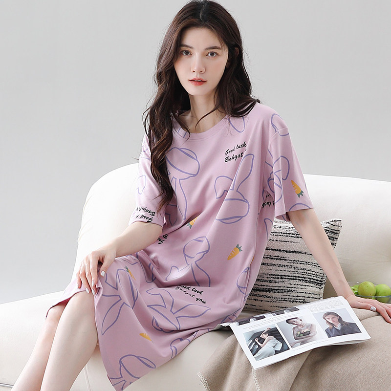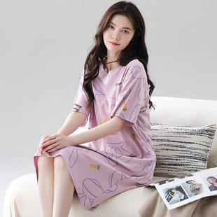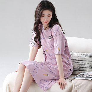 睡裙女夏季 全棉夏天宿舍学生女生卡通中裙睡衣家居服外穿 纯棉短袖