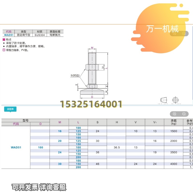 M20M24 M16 L100 L125 L200不锈钢重载型脚杯 WAD51 L150 D100