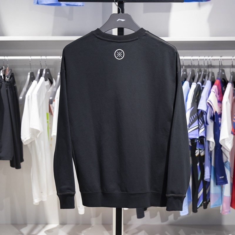 运动服女款 李宁加绒卫衣男士 黑色上衣宽松长袖 情侣圆领套头衫 冬季