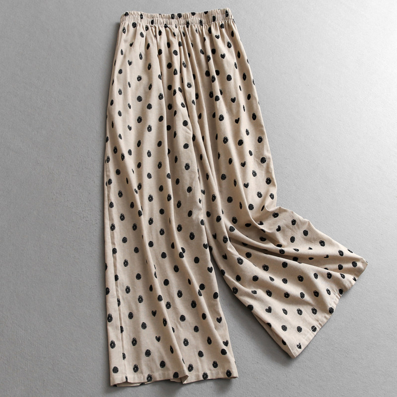 女九分裤 百搭休闲裤 C287 山本裤 波点棉麻松紧腰显瘦高腰宽松阔腿裤