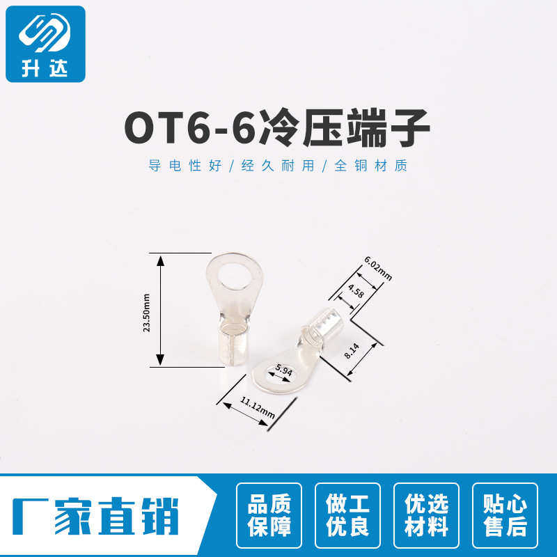 OT6 6冷压端子接线耳O型圆形铜鼻子接线压接裸端子连接器1000只